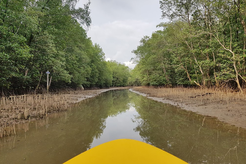 คำอธิบายโครงการ : สถานที่เที่ยวปากอ่าวแม่น้ำตราด นั่งเรือชาวบ้านพาเข้าไปในป่าชายเลน